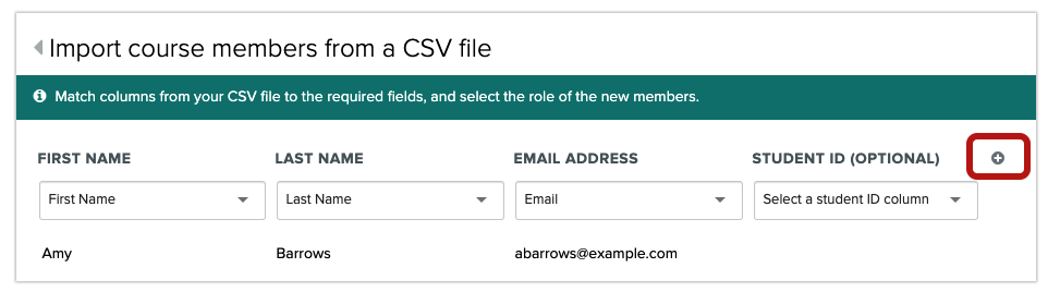 - Once your file is uploaded, if you lot added a new column, make sure to press the + sign (come across paradigm below) on the roster import screen. Select the header proper noun of your new cavalcade from the dropdown. Click Import when you're finished.